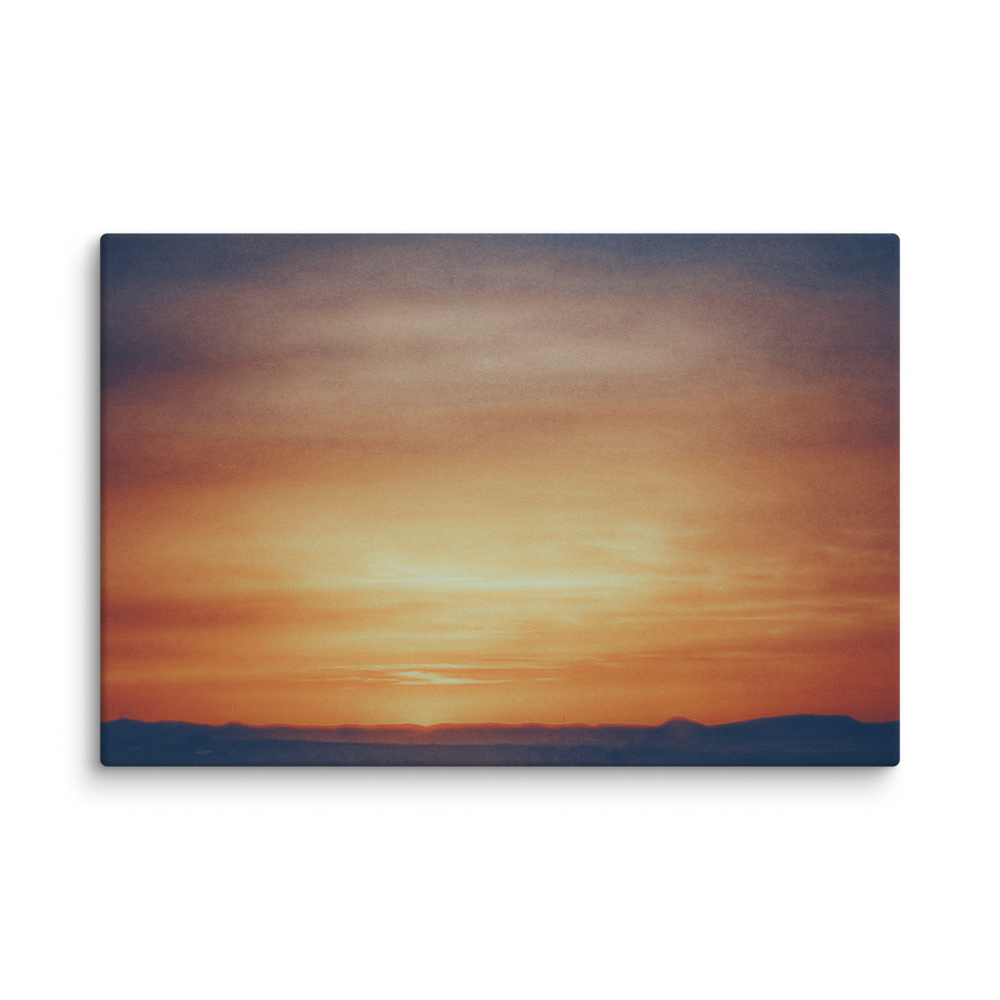 Bring a touch of natural beauty and serenity to your space with this stunning sunset over the Agafay Desert. Captured at the moment that the sun dipped behind the rugged silhouette of the distant hills, as the sky turned a fiery orange, before all colour faded away.